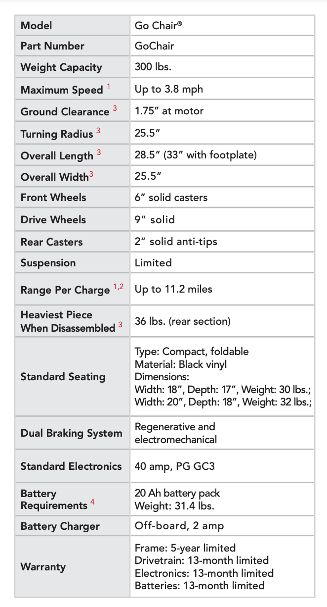 - 8.7 miles per charge at 300 lbs., 13.2 miles per charge at 200 lbs.