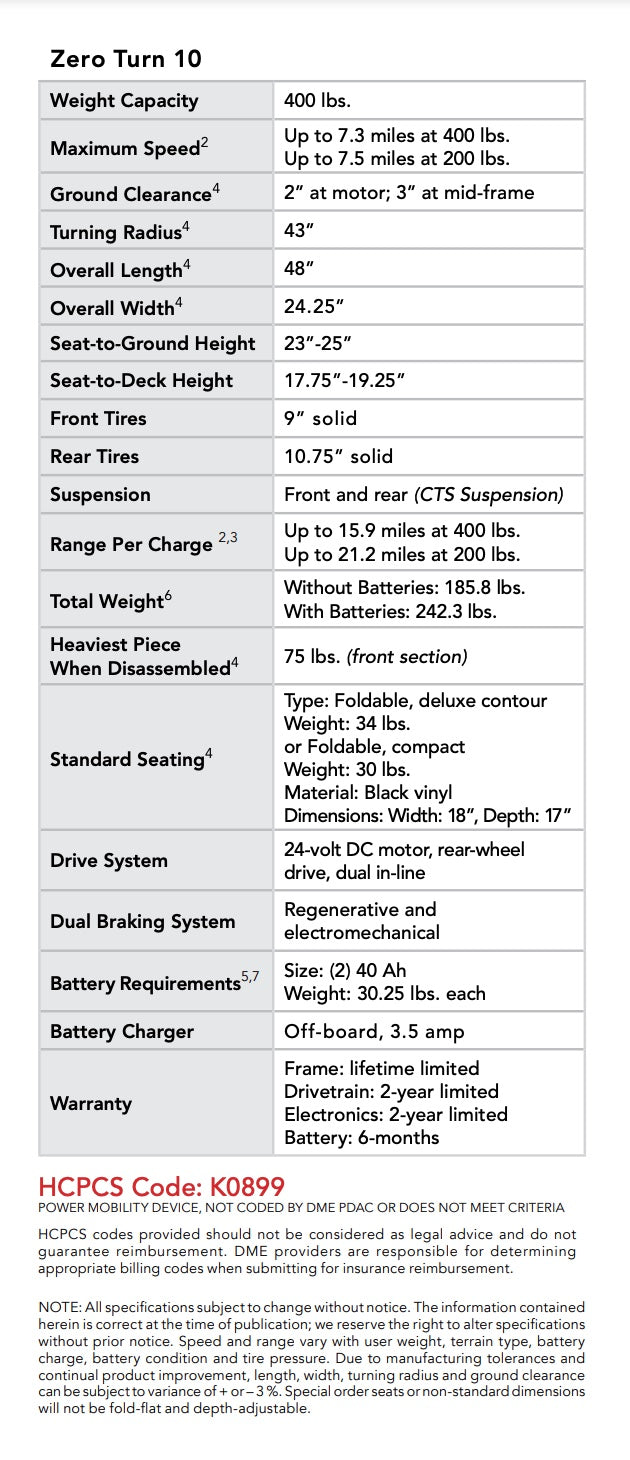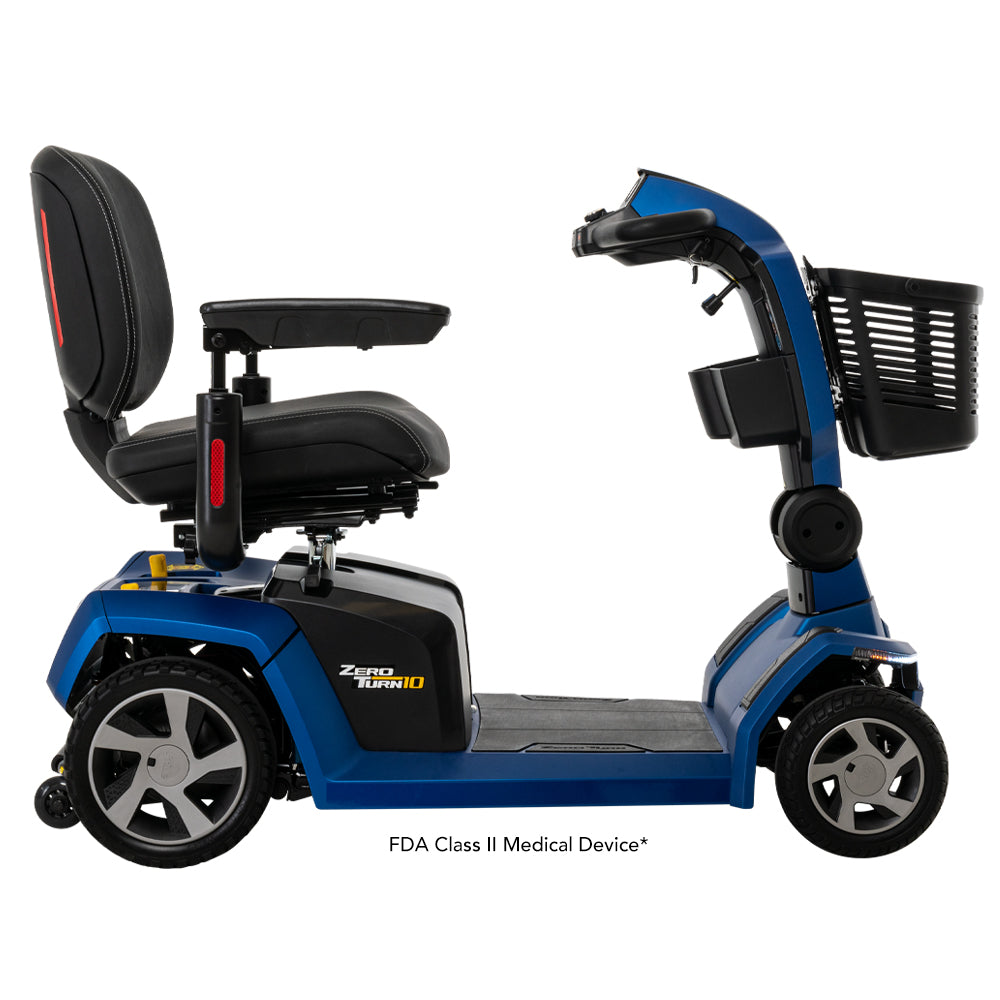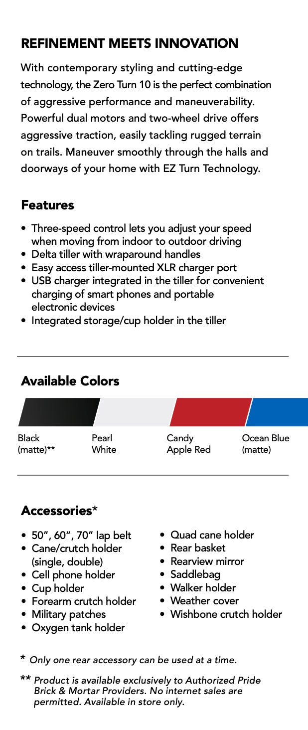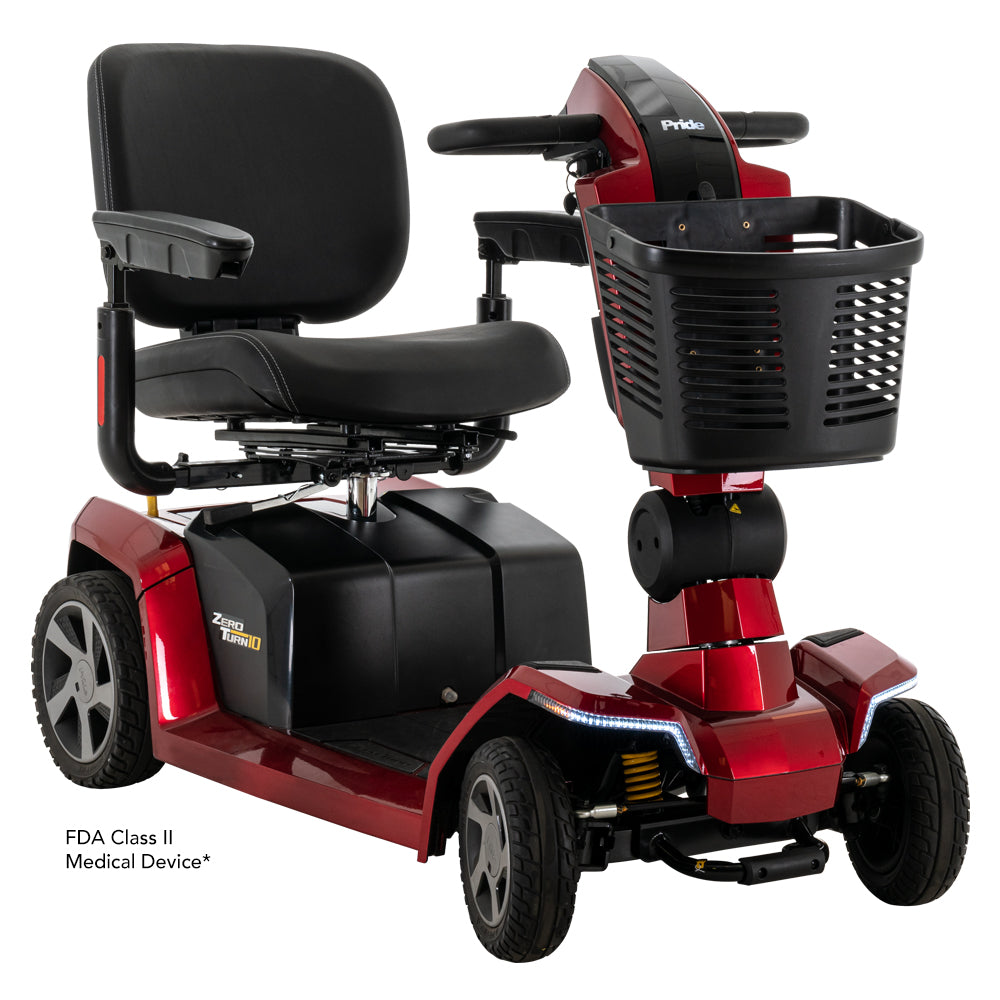 - Pride’s patent pending, intelligent-turning, iTurn Technology provides 4-wheel stability with 3-wheel maneuverability